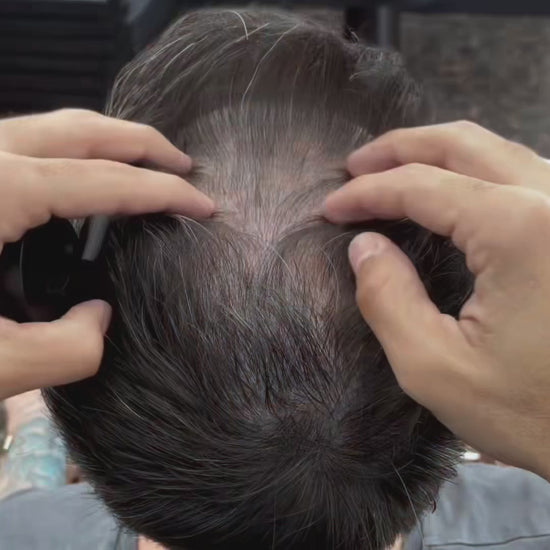 Ακόμα και στις περιοχές που φαίνονται αδειανές, συνήθως υπάρχουν πολύ λεπτά ή ανοιχτόχρωμα μαλλιά. Η σκόνη θα κολλήσει σε αυτές τις περιοχές για να γεμίσει οπτικά τα κενά και να δημιουργήσει ένα φυσικό αποτέλεσμα πυκνότητας. Αυτό επιτρέπει την ομοιόμορφη εμφάνιση, ακόμη και σε περιπτώσεις έντονης απώλειας μαλλιών.
